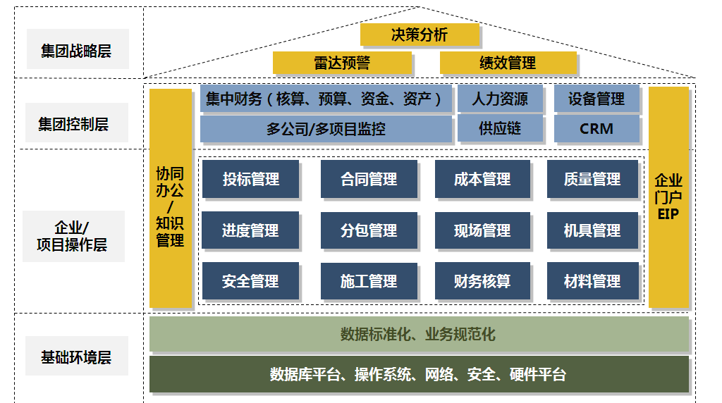 蘇中建設集團經過多年信息化(huà)的洗禮,得到了(le)很多的收獲,其中最大的收獲在于對信息化(huà)的理(lǐ)解,蘇中建設 認為(wèi) “企業信息化(huà)的實質是管理(lǐ)優化(huà)(BPI),涉及到企業管理(lǐ)理(lǐ)念、模式、流程的提升與改造,企業也(yě)隻有經過這(zhè)一(yī)系列 的改造,信息化(huà)才能(néng)真正的切實的效果,蘇中建設将會在今後的企業發展中實施信息化(huà)前置的策略,以支持蘇中建設的持續發展”。