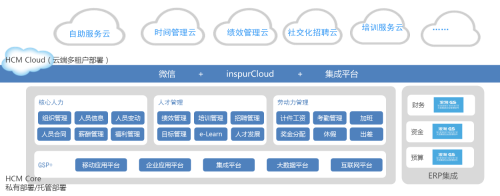 浪潮HCM是基于互聯網+的人(rén)力資本服務(wù)平台,由線上(shàng)HCM Cloud與線HCM Core有機結合,包括組織管理(lǐ)、人(rén)員(yuán)管理(lǐ)+人(rén)事(shì)服務(wù)雲、薪資福利管理(lǐ)+薪資福利雲、時(shí)間(jiān)管理(lǐ)+時(shí)間(jiān)管理(lǐ)雲、績效管理(lǐ)+績效雲、培訓管理(lǐ)+培訓雲、招聘管理(lǐ)+招聘雲、報(bào)表中心、協作(zuò)雲等模塊,除人(rén)力資源系統的傳統功能(néng)應用之外,實現(xiàn)了(le)讓HCM系統走出人(rén)力資源部,應用于全員(yuán),從而發揮HCM系統真正價值。